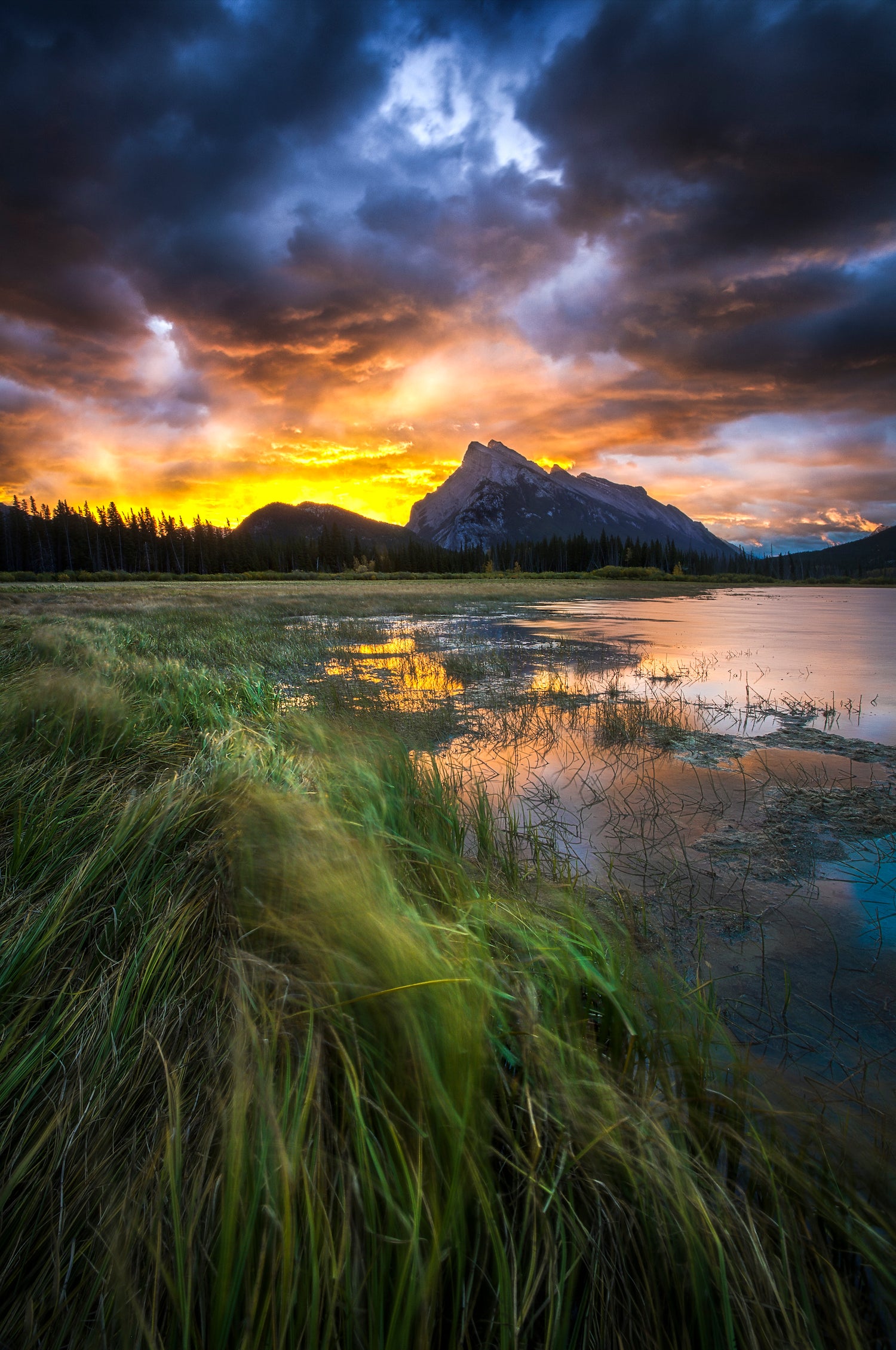 An explosive sunrise at Vermilion Lakes, Banff National Park.