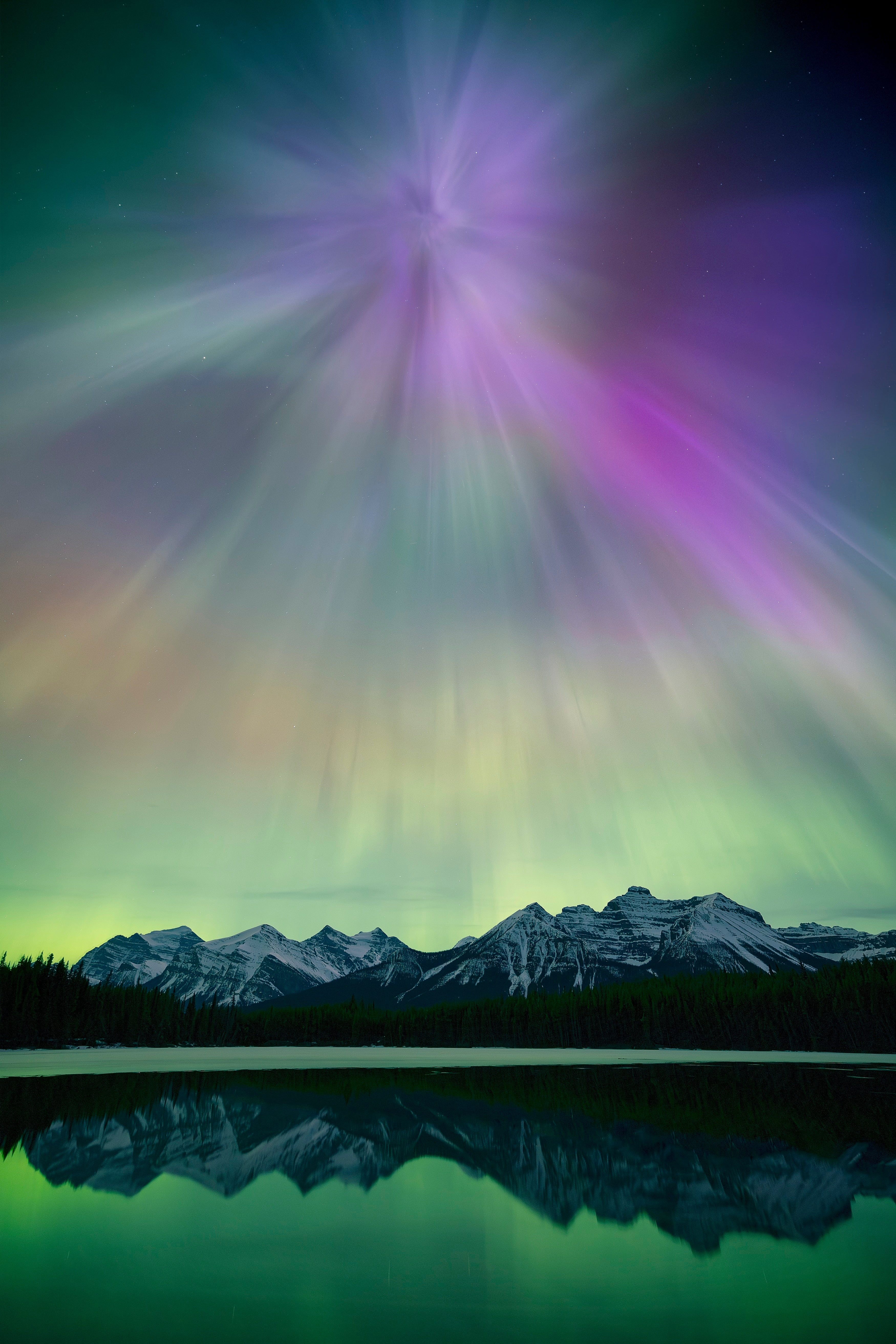 Northern Lights over Herbert Lake, Banff National Park, Alberta.